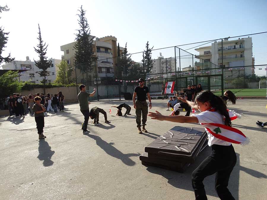 تَضّمَّنَ يَوْمُ الاحْتِفالِ عُروضًا مُنَوَّعَةً قَدَّمَها تَلامِذَةُ الْحَلَقَتَيْنِ الثّانِيَة وَالثّالِثة الفَرع الانكليزيّ: مَسْرَحِيَّة جَسَّدَتْ مَعاني الْحُرّيّةِ، تَلاها إِلْقاءُ قَصائد وَطَنيّةٍ مُؤَثِّرَةٍ، إضافَةً إلى اسْتِعْراضاتٍ رياضيّةٍ شَكَّلَتْ لَوْحةً رائعةً تُعَبِّرُ عنْ روحِ الاسْتِقْلالِ. وَتّخَلَّلَتِ الاحتِفالُ أَيضًا فقرةُ زَجَلٍ مُمَيَّزَةٌ مَزَجَتْ بَينَ الفخرِ وحُبِّ الوطنِ، ما أَضافَ إلى الاحتفالِ نكهة تُراثيّة.