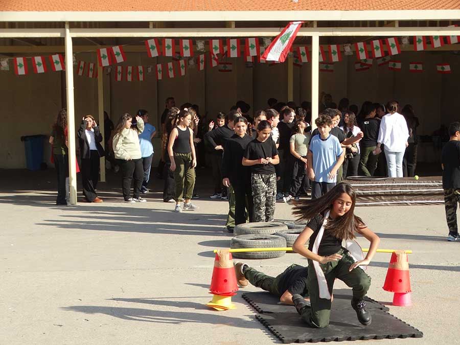 تَضّمَّنَ يَوْمُ الاحْتِفالِ عُروضًا مُنَوَّعَةً قَدَّمَها تَلامِذَةُ الْحَلَقَتَيْنِ الثّانِيَة وَالثّالِثة الفَرع الانكليزيّ: مَسْرَحِيَّة جَسَّدَتْ مَعاني الْحُرّيّةِ، تَلاها إِلْقاءُ قَصائد وَطَنيّةٍ مُؤَثِّرَةٍ، إضافَةً إلى اسْتِعْراضاتٍ رياضيّةٍ شَكَّلَتْ لَوْحةً رائعةً تُعَبِّرُ عنْ روحِ الاسْتِقْلالِ. وَتّخَلَّلَتِ الاحتِفالُ أَيضًا فقرةُ زَجَلٍ مُمَيَّزَةٌ مَزَجَتْ بَينَ الفخرِ وحُبِّ الوطنِ، ما أَضافَ إلى الاحتفالِ نكهة تُراثيّة.